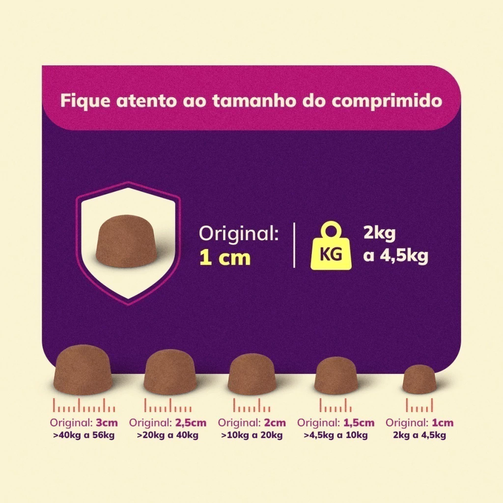 • Apresentação: Contém 1 comprimido mastigável para cachorros.